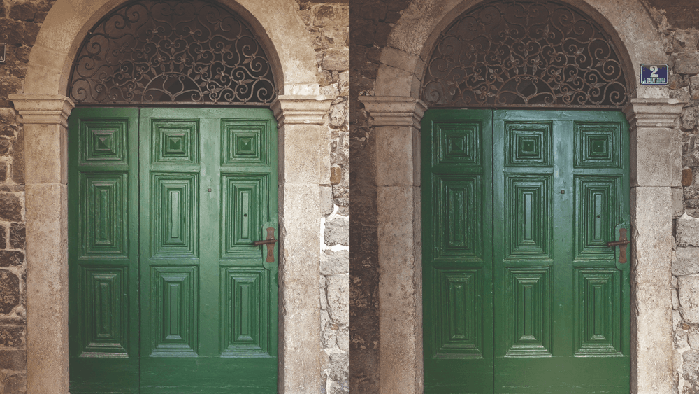 Barokni portal na palači Pelegrini-Tambača iz 18. stoljeća vrlo je jednostavnog lučnog oblika kakav se javlja još na renesansnim portalima u Dalmaciji. Luk portala nastao je rekonstrukcijom od više raznorodnih fragmenata. Kapiteli pod lukom imaju profilaciju karakterističnu za razdoblje barokne arhitekture u Dalmaciji. Baze dovratnika imaju gotički profil i to su vjerojatno spolije skinute s nepoznatog objekta u gradu. Portal krasi jedna od najvrsnijih baroknih kovanih željeznih rešetki u gradu. Rešetka je sastavljena od sučeljenih S-voluta što je jedan od najčešćih dekorativnih detalja na baroknim kovinskim proizvodima. Na portalu su drvene vratnice izvedene s kasetama u visokom reljefu na kojima se pojavljuje i motiv dijamantnog vrška, što su sve elementi karakteristični za barokni stil.