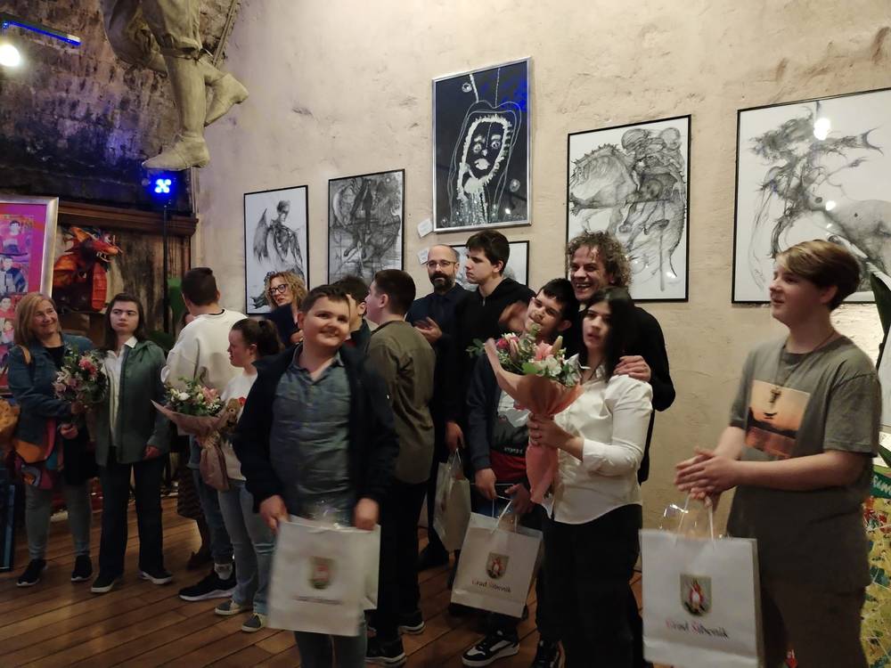 Izloženo je 30-tak radova osmero autora koji su nakon što je izložba proglašena otvorenom izašli pred publiku uz potporu svojih roditelja, a Grad Šibenik im je uručio posebne darove. Ne zna se tko je bio ponosniji – oni, njihovi roditelji, Zvonimir Vila, ravnateljica Centra Nataša Tucak i njezini kolege ili svi ostali koji su ih došli podržati na toj nesvakidašnjoj izložbi. Zvonimir Vila je ustvrdio kako bi ti njihovi umjetnički radovi mogli biti izloženi u bilo kojoj galeriji na svijetu i nije pogriješio.