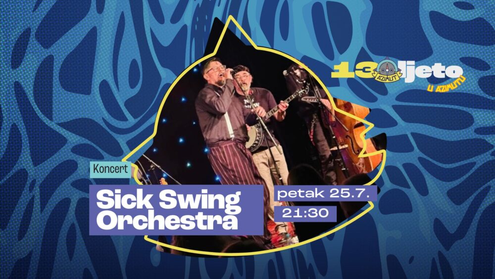 Zagrebački Sick Swing Orchestra sprema glazbenu večer uz ritmove swinga i dixielanda, u petak, 25. srpnja, na green stageu kluba Azimut u Šibeniku. Koncert počinje u 21:30 sati. Publiku očekuje noć pod zvijezdama ispunjena zvukovima velikana poput Dukea Ellingtona, Chrisa Barbera i Django Reinhardta.