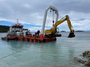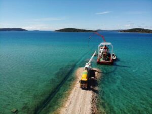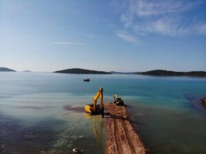 – Radili smo sve subote, nedjelje, praznike jer smo bili u škripcu što se tiče vremena. Morali smo što više iskoristiti lijepe dane jer je bilo puno ružnih dana kad jednostavno nismo mogli raditi zbog jakog juga ili bure. Dugo radimo ovakve poslove, a dvije protekle zime su bile iznimno nepogodne za radove. Morali smo na more krenuti ujutro u 4-5 sati da bi izbjegli maestral jer je svaki dan nešto puhalo i to onemogućava radove. Ovo je osjetljiv posao jer morate pozicijski staviti cijevi da bi ih potopili. Kad se moglo raditi našim sedam-osam ronioca bilo je u moru i do pet sati dnevno. Na plićinama do 12 metara radili su i sve građevinske radove od iskopa prema obalnom dijelu do miniranja i betoniranja jer tu cjevovod moramo zaštiti od djelovanja utjecaja more i drugih vanjskih sila, ali i od sidrenja. Na većim dubinama cijevi smo slobodno položili na morsko dno. Te trase će Hrvatski hidrografski institut ucrtati na karte, nakon čega će tu biti zabranjeno bilo kako sidrenje – objašnjava Gulin.