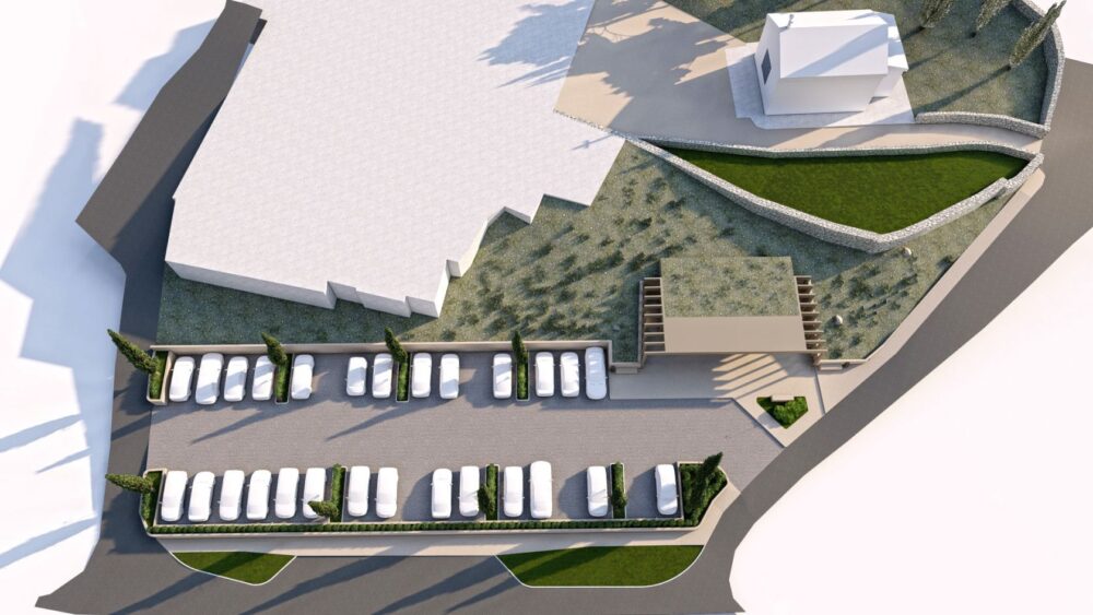 Planira se jednostavan objekt površine 60 četvornih metara oblikovan u prirodnim materijalima kao što su kamene obloge, drvo te mineralna žbuka u klasičnoj ili staroj spatolato tehnici te parking za tridesetak automobila i zelenilom.