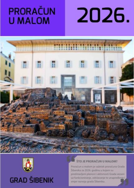 Grad Šibenik i ove je godine pripremio vodič kroz gradski proračun za građane pod nazivom „Proračun u malom“ 2026. Riječ je o informativnoj brošuri koja na jasan i pregledan način predstavlja financijske planove i prioritete Grada, s ciljem približavanja gradskih financija građanima te pojednostavljivanja najvažnijeg dokumenta potrebnog za funkcioniranje Grada.