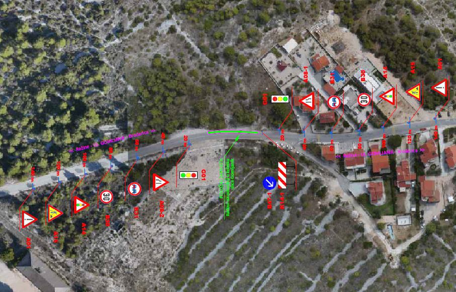 Privremena prometna signalizacija bit će postavljena kako bi vozači pravodobno uočili promjene u prometnom režimu i prilagodili vožnju uvjetima na cesti, dok će radno područje biti propisno označeno i osigurano zaštitnom opremom.