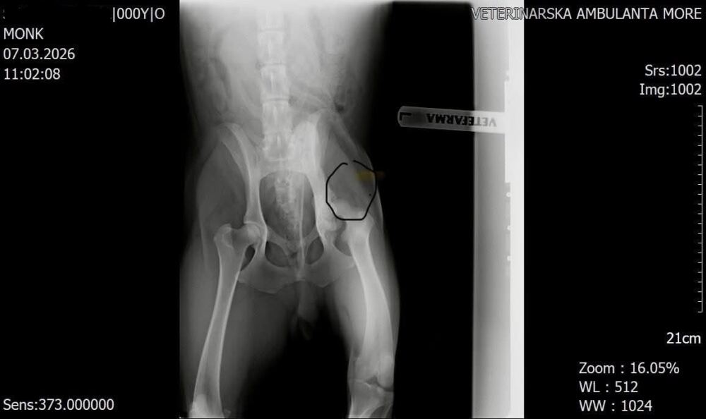 On je mlad pas, oko godinu i po dana star, i veterinar kaže da je operacija potrebna kako bi se mogao oporaviti i nastaviti normalno hodati – bez bolova i smetnji.