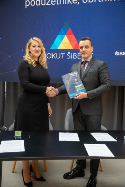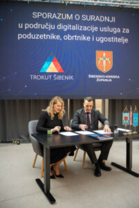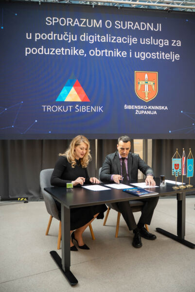 Šibensko-kninski župan Paško Rakić i direktorica centra Trokut Šibenik Diana Mudrinić potpisali su danas Sporazum o suradnji kojim je učinjen važan iskorak prema sustavnoj digitalizaciji usluga namijenjenih poduzetnicima, obrtnicima i ugostiteljima na području Šibensko-kninske županije.