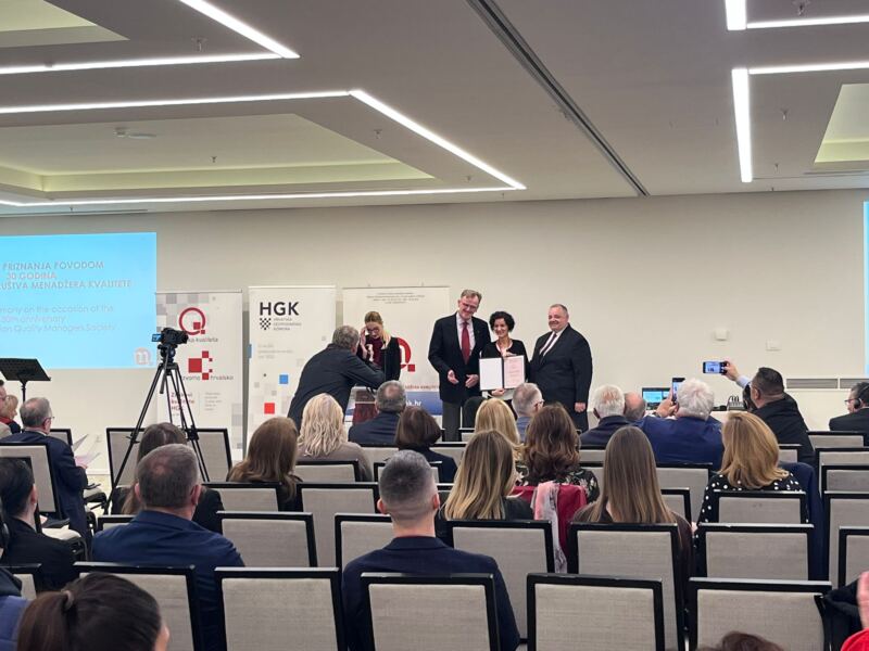 Na 27. međunarodnom simpoziju KVALITETA – JUČER, DANAS, SUTRA, koji se u organizaciji Hrvatskog društva menadžera kvalitete održava i uz suorganizaciju VUŠ-a šibenskog Veleučilištu dodijeljeno je priznanje za značajan doprinos razvoju i djelatnosti tog Društva kao i za unapređenju kvalitete uopće, što predstavlja vrijedno priznanje dugogodišnjem radu i angažmanu šibenske visokoškolske ustanove.