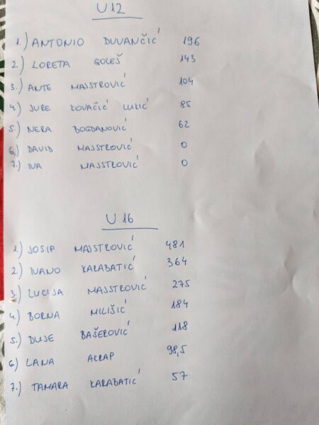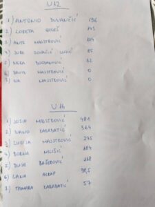 U kategoriji ‘najmlađih’ U-12 nastupilo je sedam natjecatelja. Zlato je osvojio Antonio Duvančić sa ulovom od 196 grama, srebrna je Loreta Goleš s ulovom od 143 grama, a broncu Ante Majstrović s ulovljenih 104 grama.