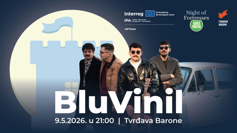 Ulaznice za besplatni koncert BluVinila na Tvrđavi Barone bit će dostupne od 27. travnja na blagajni Kuće umjetnosti Arsen. Jedna osoba može preuzeti dvije ulaznice.