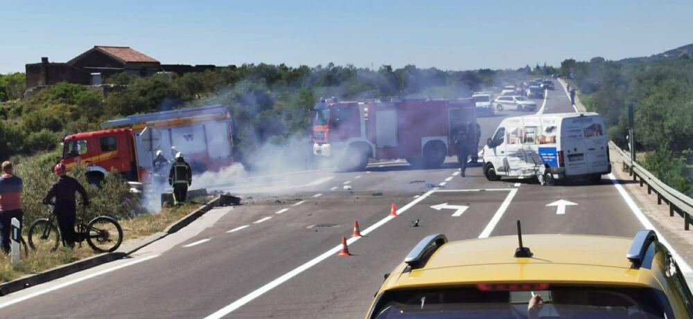 Od siline udara teretno vozilo se zaustavlja na kolniku D-58 dok se osobno vozilo odbija i izlijeće izvan kolnika, zaustavlja u betonskom odvodnom kanalu, gdje se zapalilo.